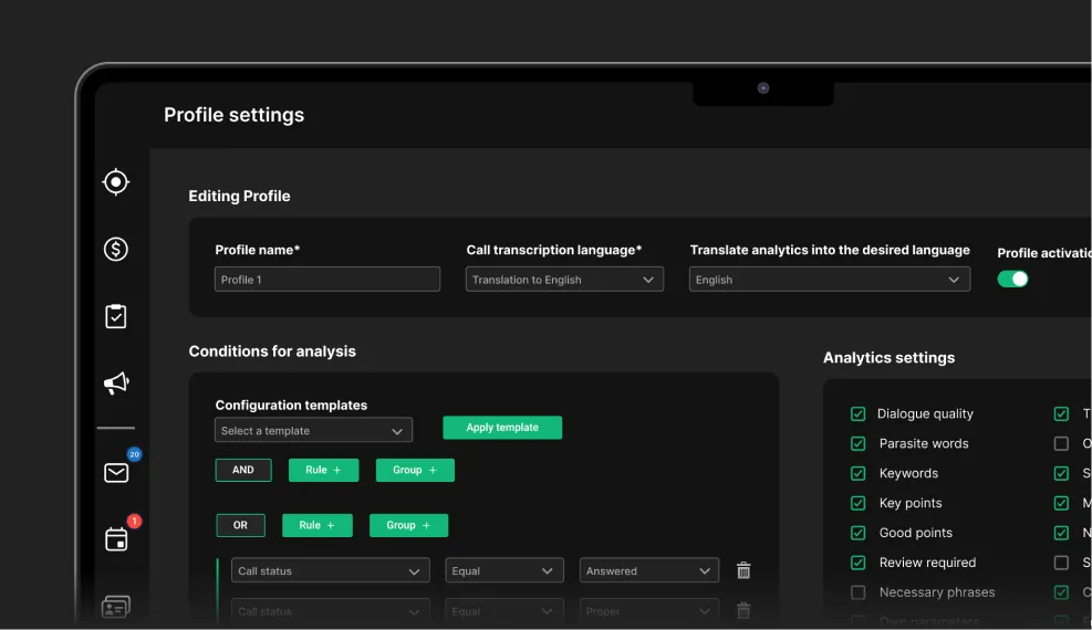 Flexible AI profiles allow more precise conversation analysis based on varying business needs, adapting to your unique workflows.