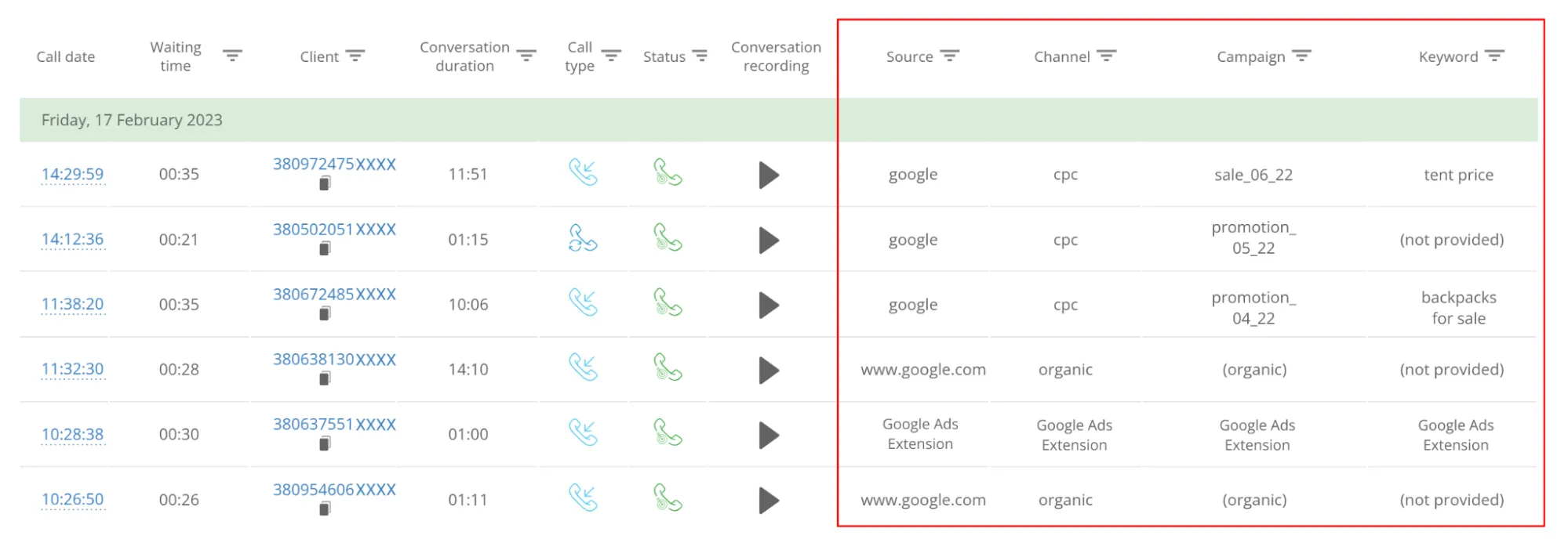 With CRM integration, every callback lead goes straight into the system — complete with visit history, campaign data, and keyword.