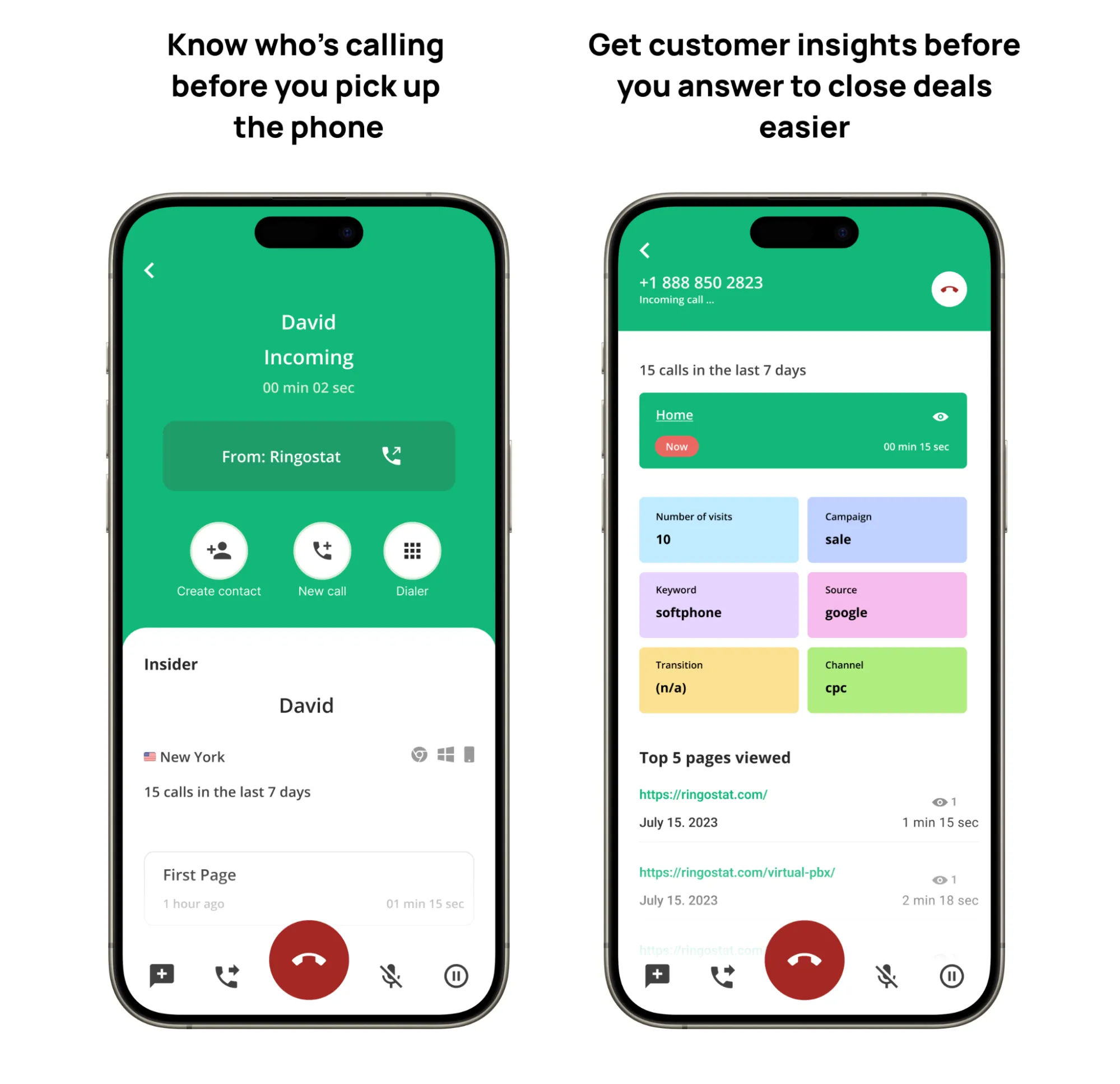 Ringostat Smart Phone shows this in the browser before you pick up or reply. No tab switching, no CRM scavenger hunts — everything is visible immediately.